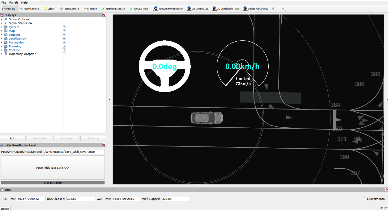It starts calculating the current ego pose by pushing the button on Rviz, implemented as an Rviz plugin. You can see the button on the right bottom of Rviz.