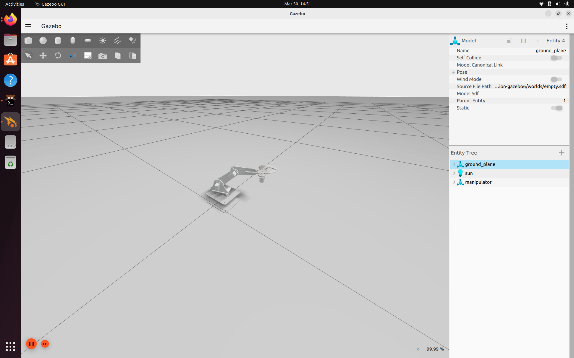 - Gazebo is the simulation tool that is used by ROS. It has a lot of Applications. In this workshop we will be using ROS to simulate the Manipulator. For the running the simulation just follow commands mentioned below.