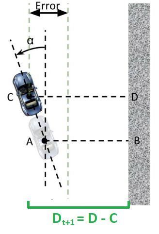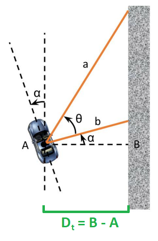 We can then express $D_t$ as $D_t = b\cos(\alpha)$ to get the current distance between the car and the right wall.